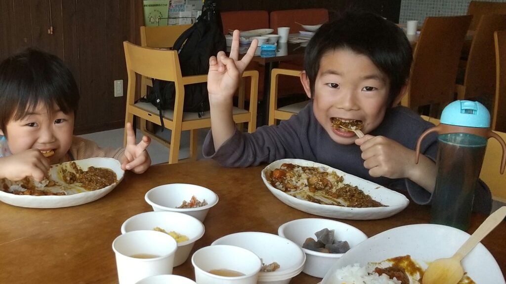 桜満開の晴天の中フェスタデピッコリーノ開催。1周年記念とのことで獅子舞コラボのエッグスタンプラリーイベントも実施。「あそぶとまなぶ」楽しく行っています。今回は寿々「ミライエ」様より岩田シェフがスペシャル2種のカレーライスを作りにきてくれました。美味しくて美味しくてたまりません~