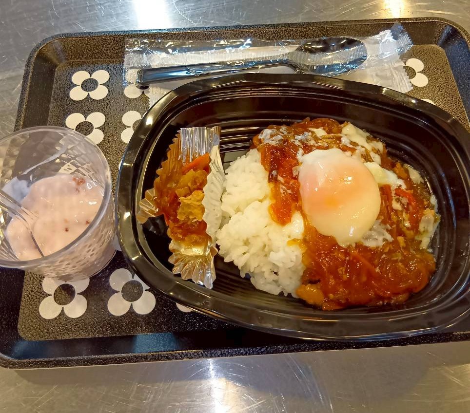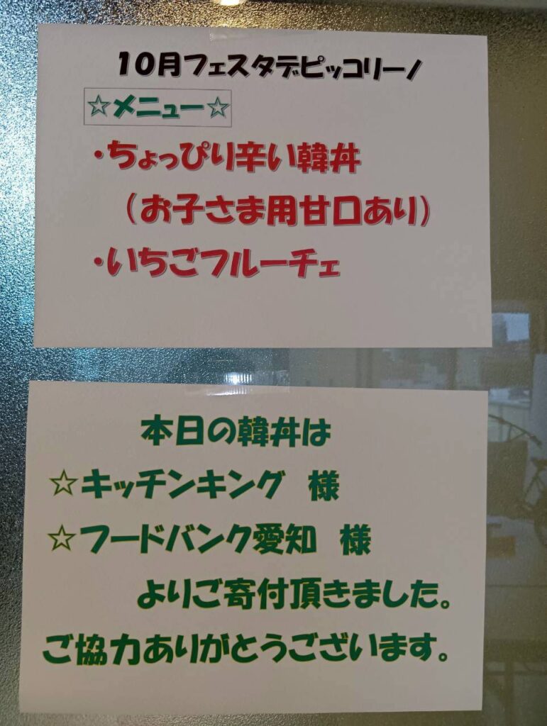 今回の昼食メニューはご寄付頂いた食材を利用して、ちょっぴり辛い韓丼(お子様は甘口)とフルーチェでした。皆さんおいしそうに召し上がっていました。