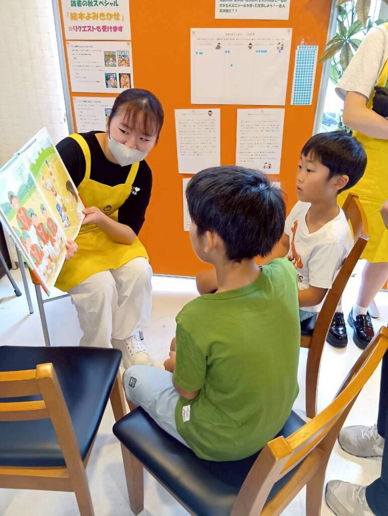 「あそぶとまなぶ」のコーナーでは、ボランティアさんの協力で、読み聞かせコーナーや絵本クイズも行いました。