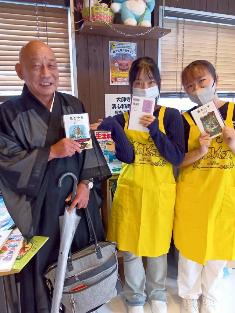 たくさんの児童書をご寄付頂いた大師寺清心和尚さまも遊びにきてくださいました。たくさんのご寄付ありがとうございます。